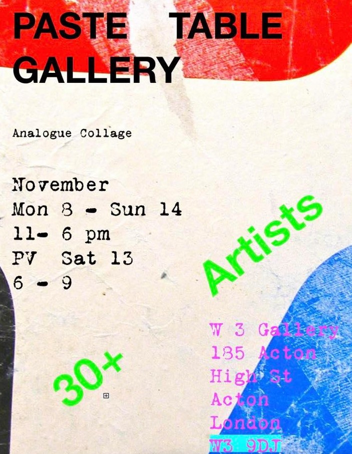Looking forward to the Private View of ‘The Death of Practice’ tonight. A group show of collage artists organised and curated by Nick Cash / Paste Table Gallery, at W3 Gallery in Acton. Nick is a musician/artist with a focus on collage. He bought one of my ‘Page’ series of collages last year through the Artist Support Pledge initiative and will be showing the piece in this exhibition alongside a host of other collage-based artists. Looks like it will be an interesting show. I’ll post pics later.