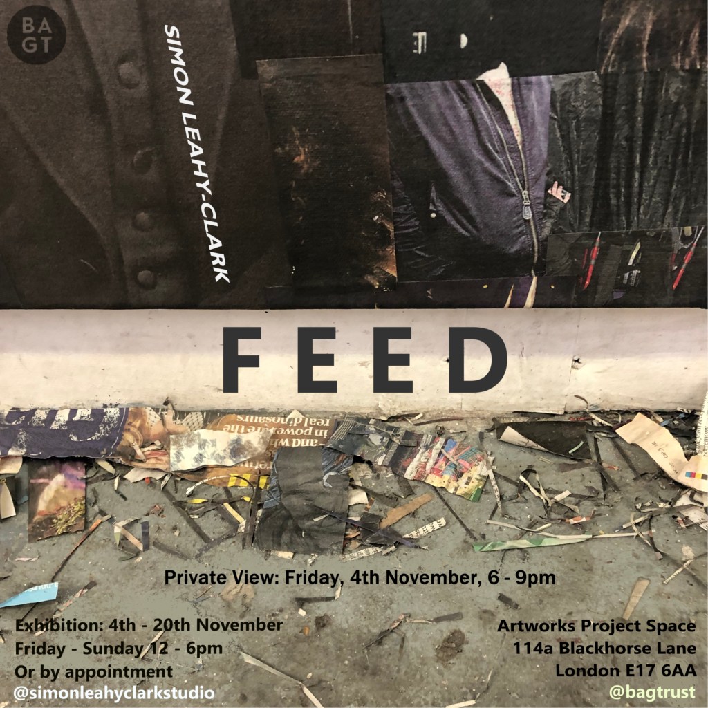 My next solo show ‘FEED’ will open at Barbican Arts Group Trust’s Artworks Project Space, 114a Blackhorse Lane, London, E17 6AA.