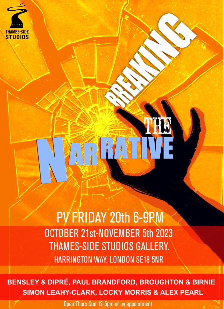 Very excited to be included in Breaking the Narrative at Thames-Side Studios Gallery, curated by Broughton & Birnie. I’ll be showing work from 2011 up to this year. The show will also include works by the curators, working collaboratively, Paul Brandford, Bensely & Dipre, Locky Morris and Alex Pearl.