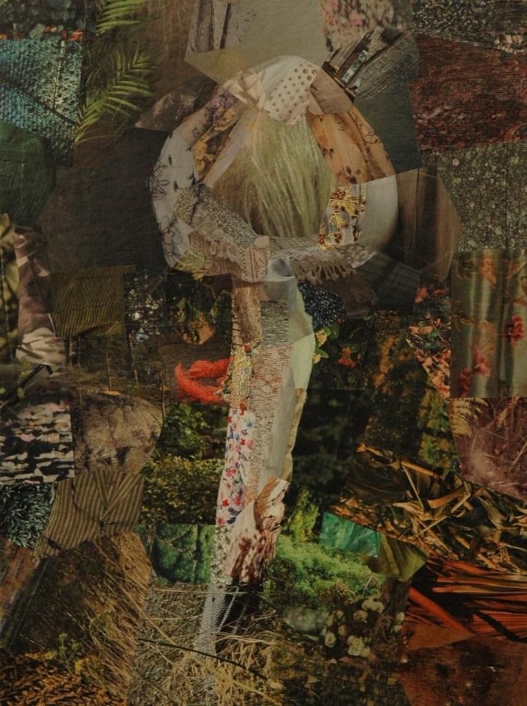 Tree Fungi I, collage (magazine cuttings on panel), 61cm x 45.5cm, 2021