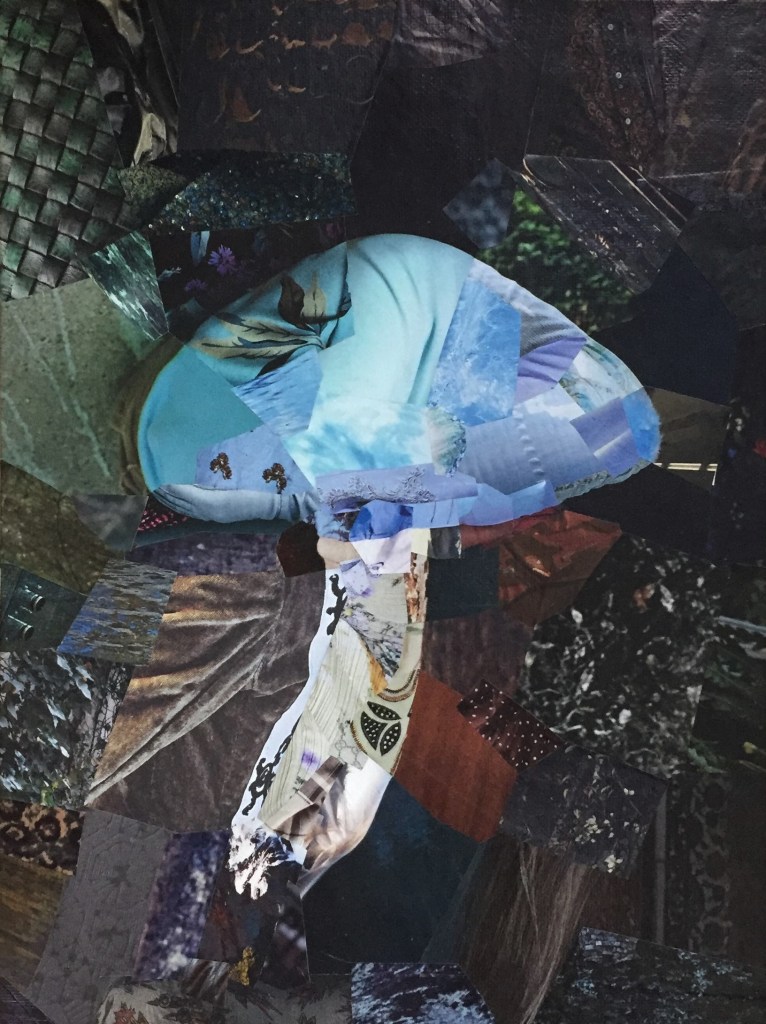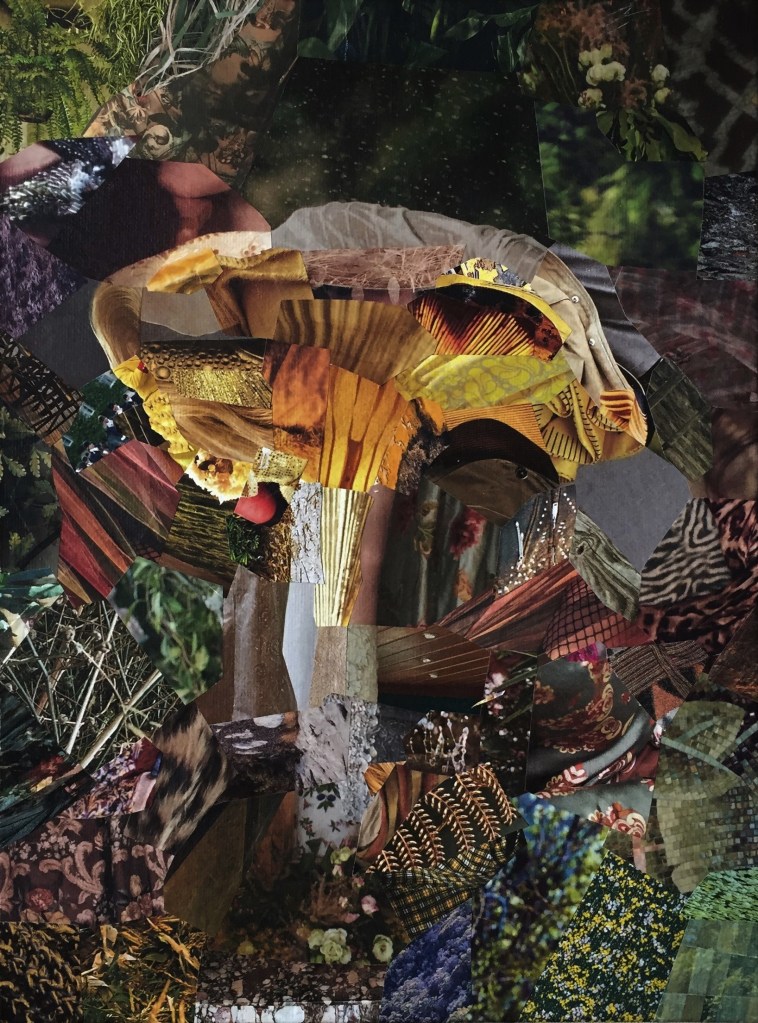 Fungi II, collage (magazine cuttings on board), 30.5cm x 23cm, 2021