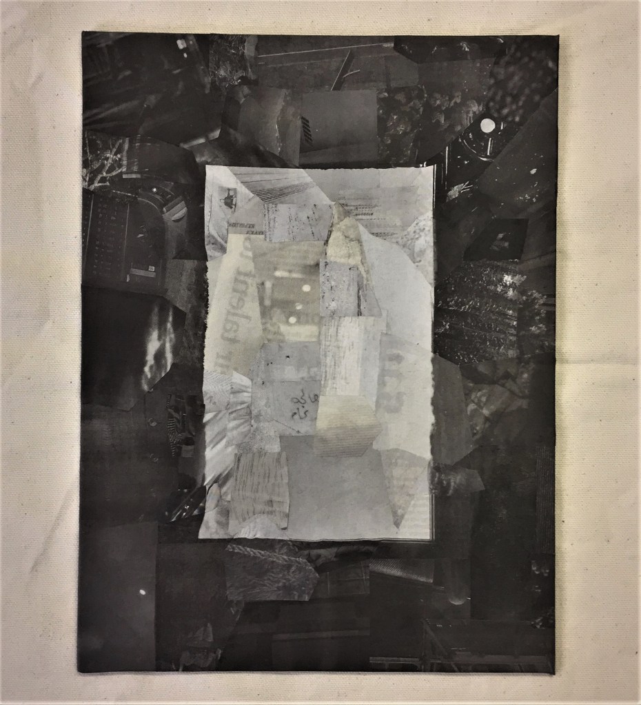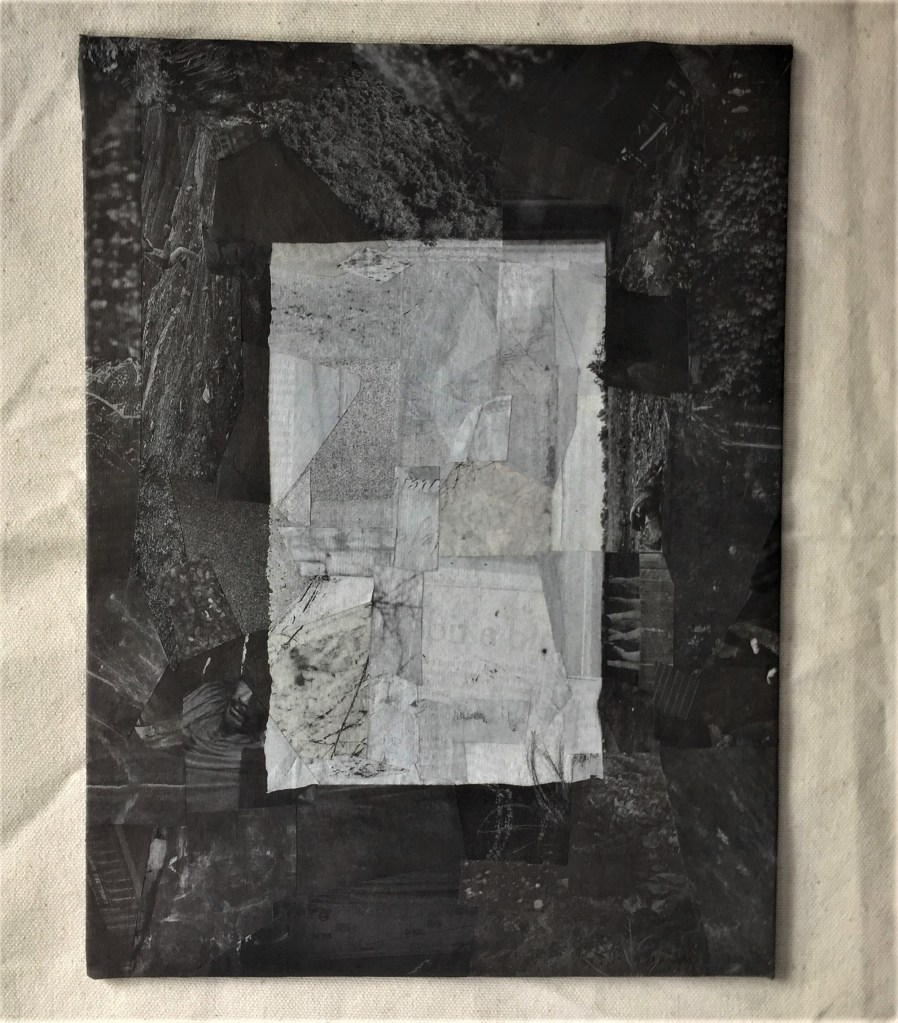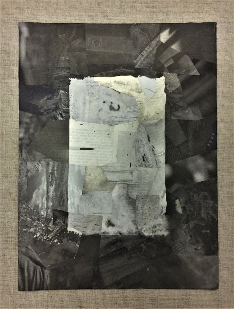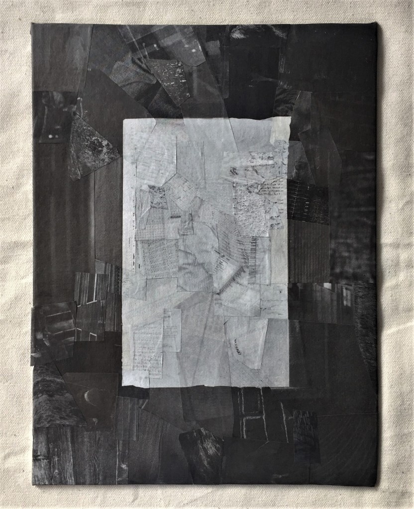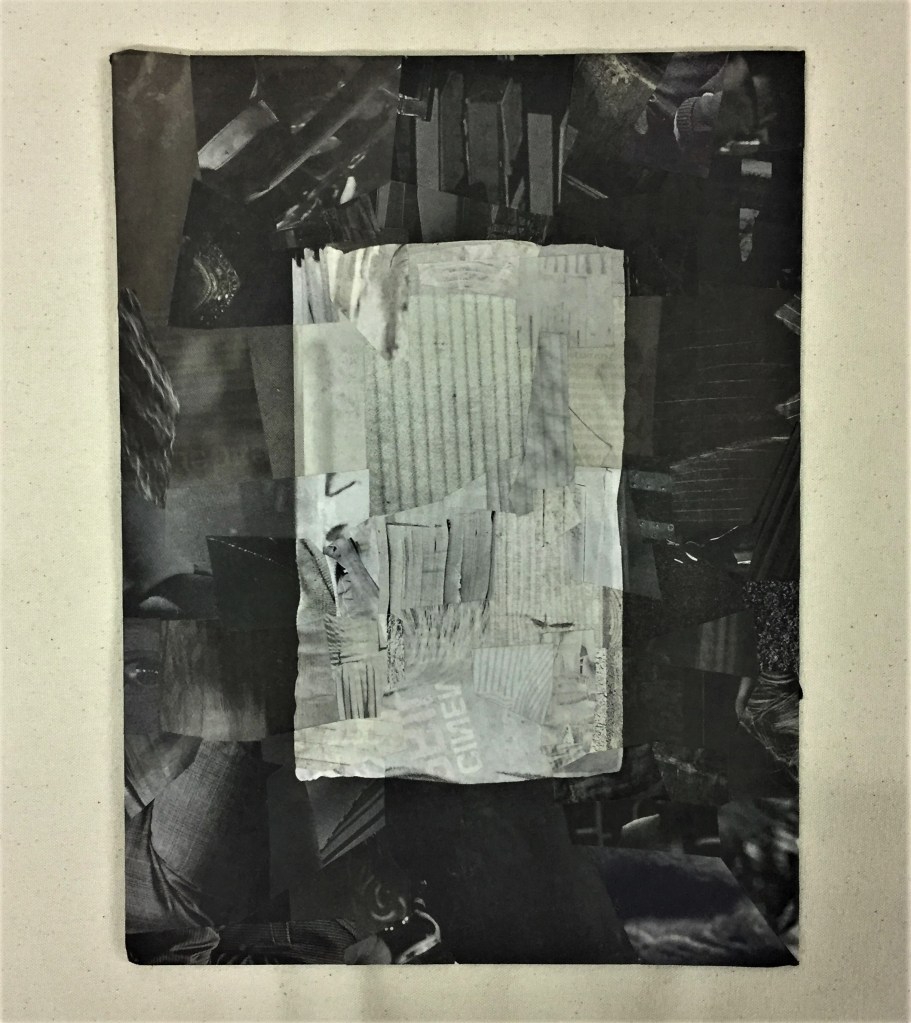 Erased Thoughts I, collage (newspaper cuttings on canvas), 61cm x 91cm, 2020