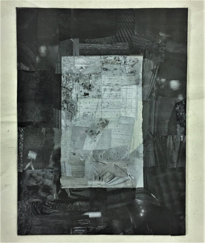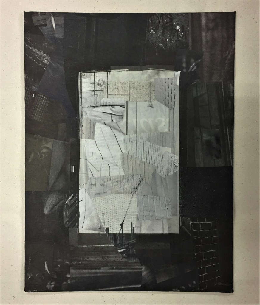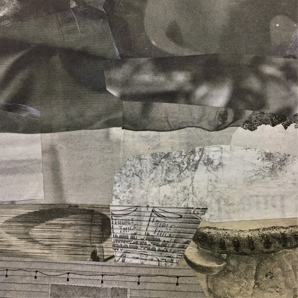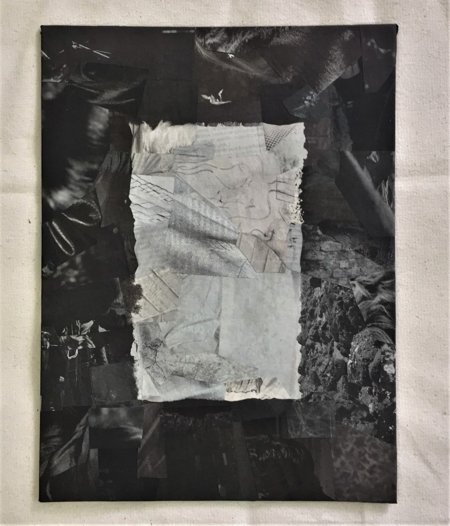 Erased Thoughts I, collage (newspaper cuttings on canvas), 61cm x 91cm, 2020
