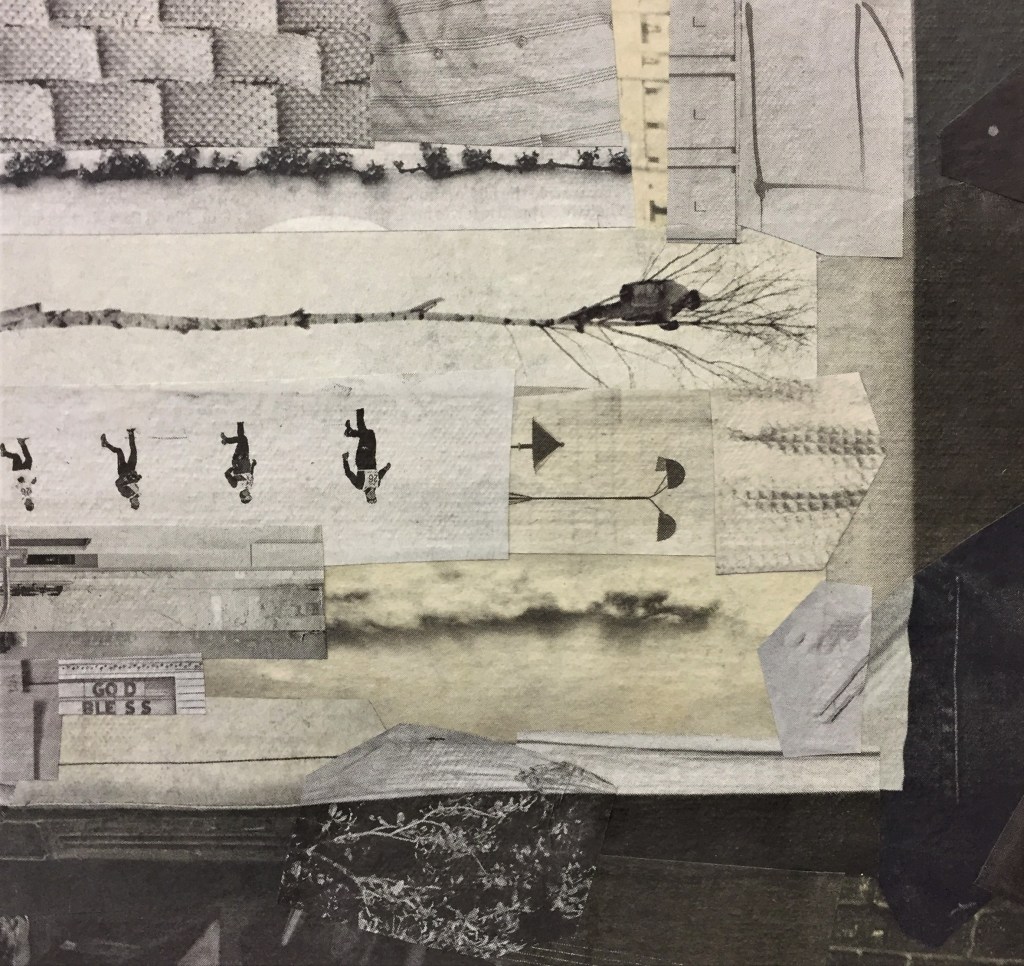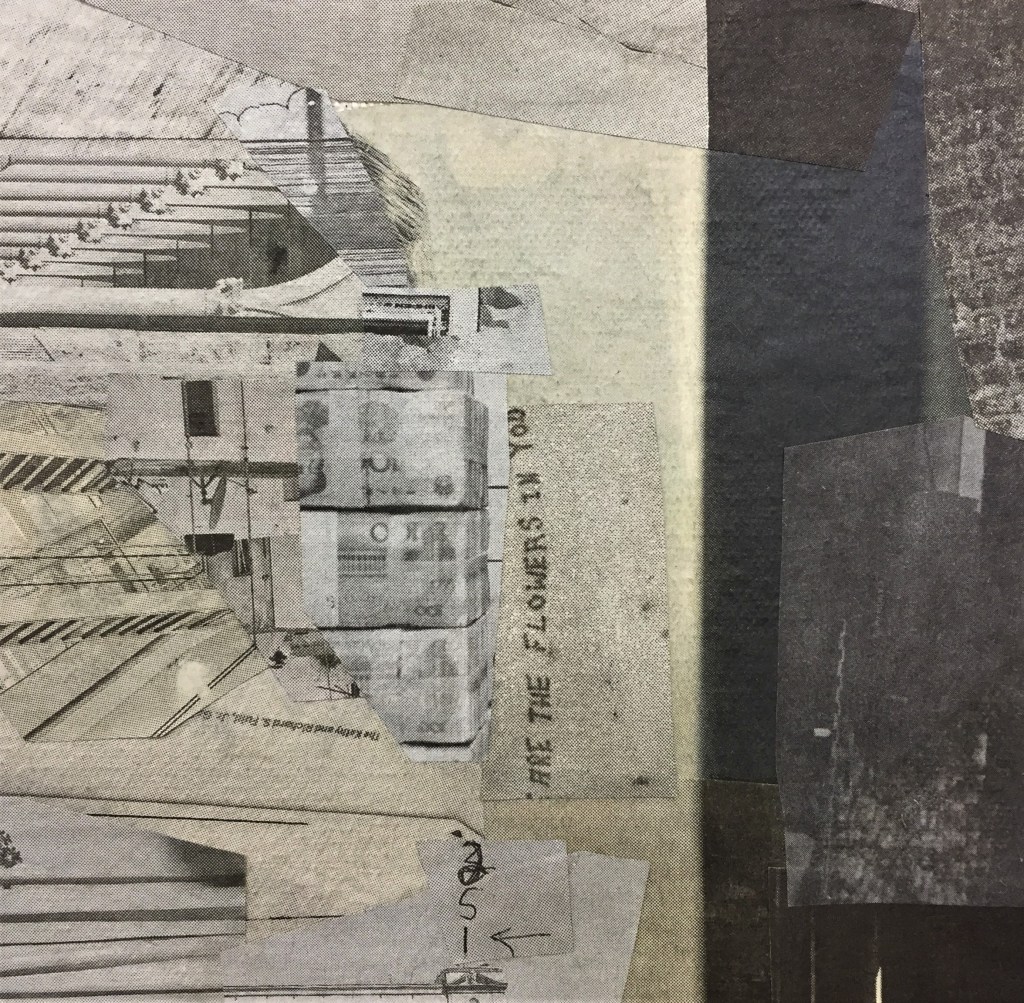 Erased Thoughts II (Flowery Avenues), collage (newspaper cuttings on canvas), 61cm x 91cm, 2020